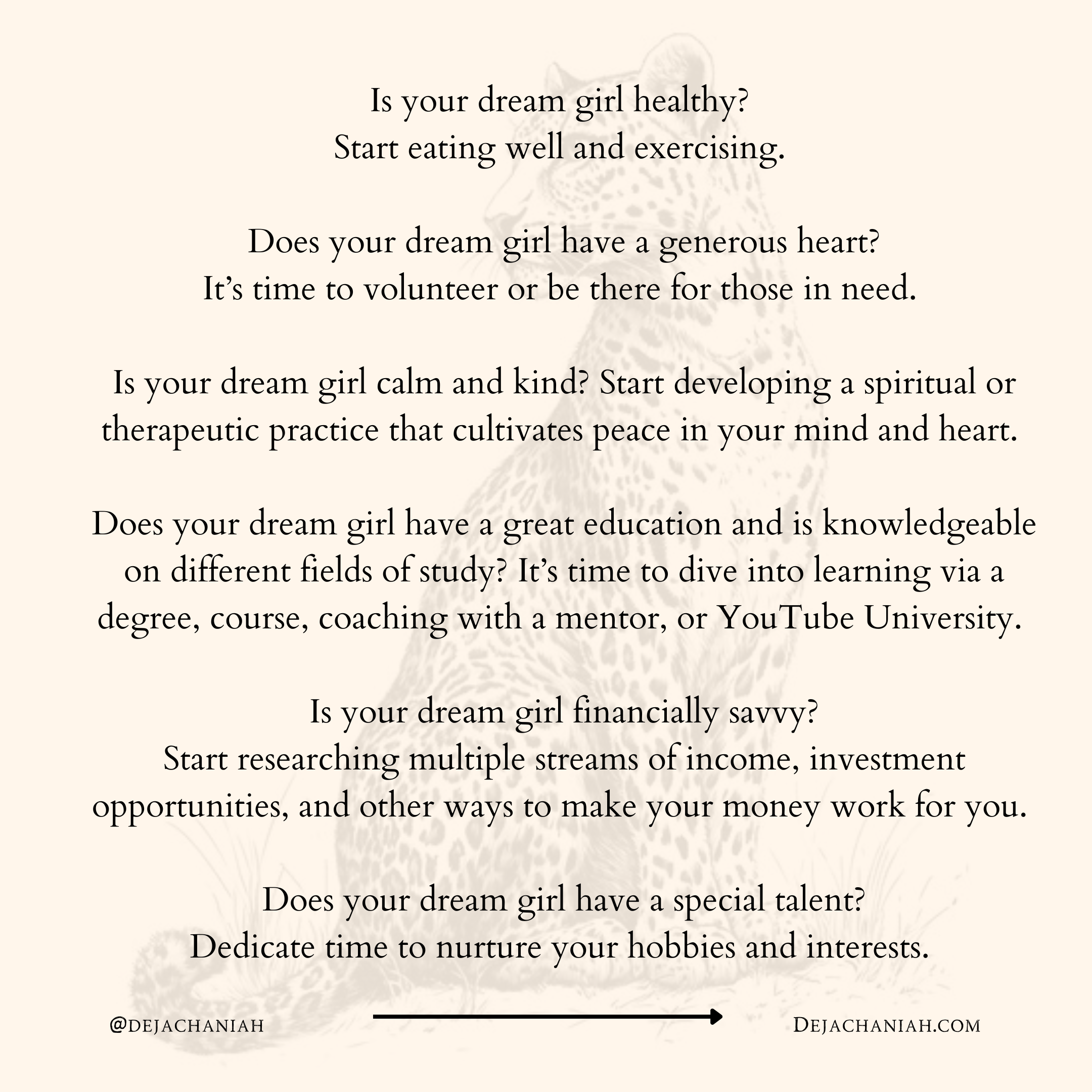 Serious inquiries only, this is for women who move with intention and trust that what’s meant for them will never miss them.