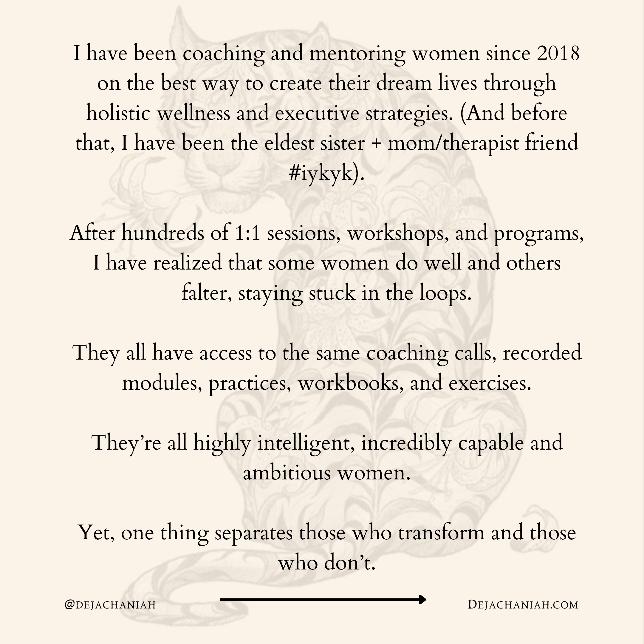 If your energy and intentions align, you’ll be invited to explore one of my private programs — but I don’t take on everyone.