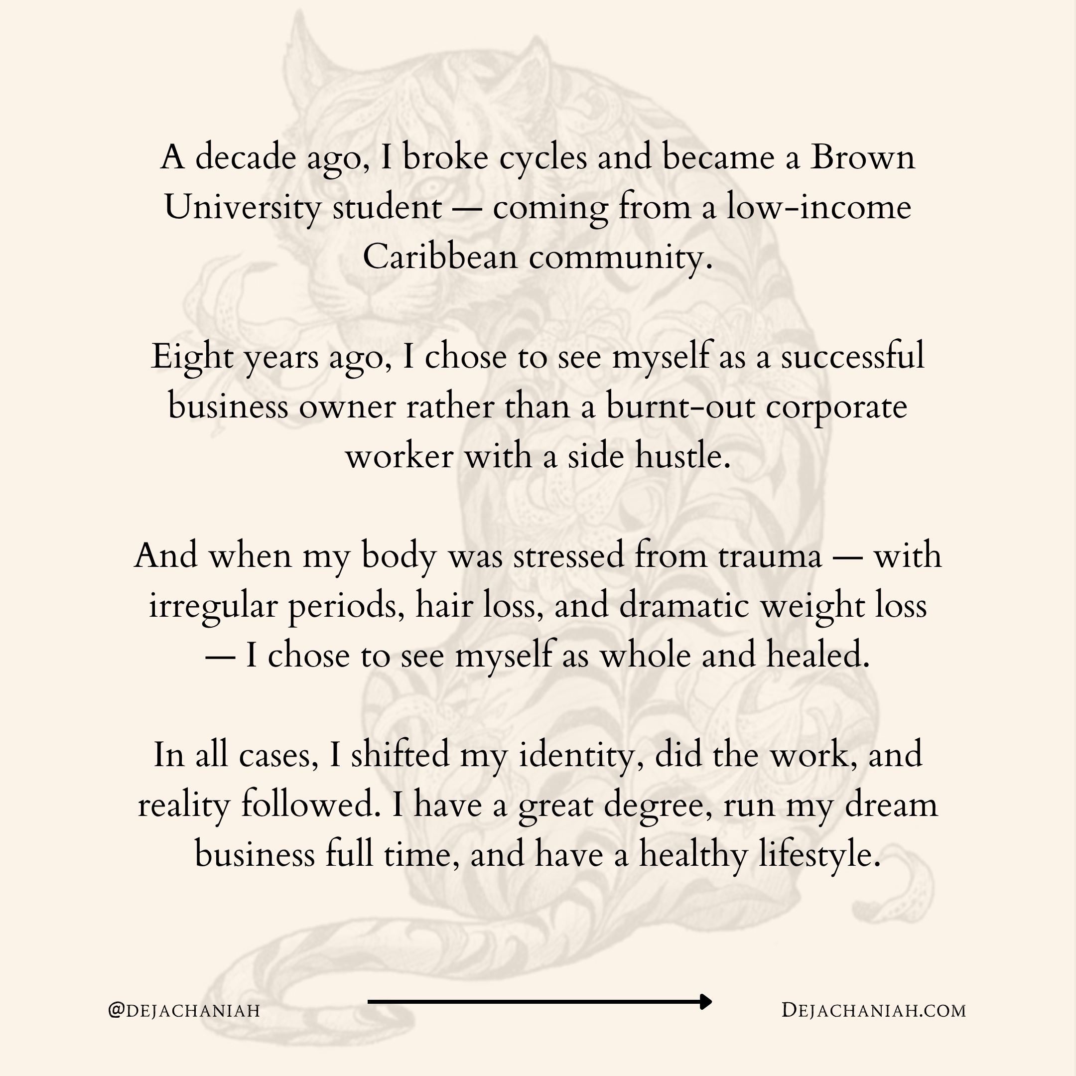 I did the same when I decided to break cycles a decade ago and attend Brown while coming from a low-income community in the Caribbean — and again eight years ago when I chose to change my identity to a successful business owner, rather than a burnt-out chick working for corporations with a side hustle.