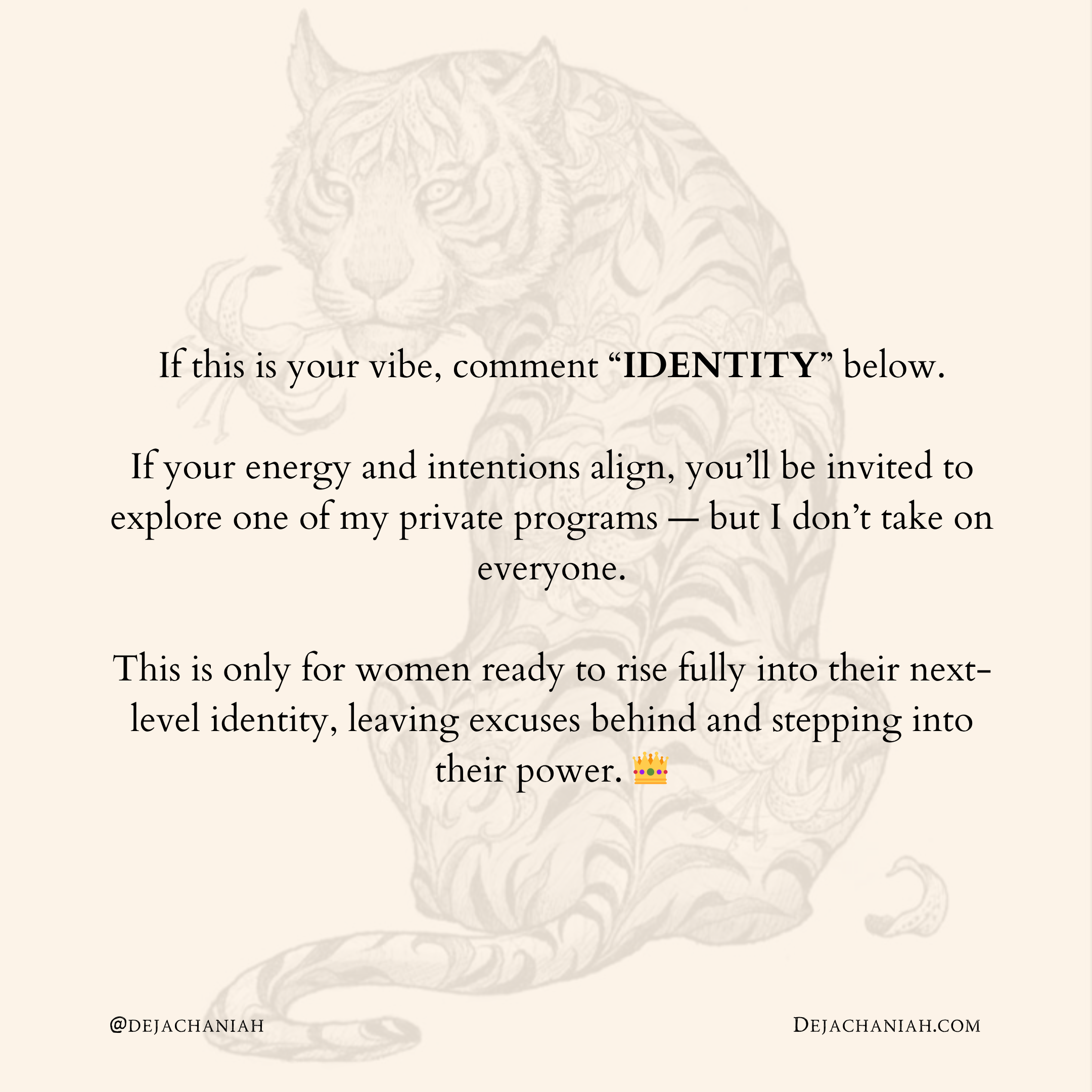 This is only for women ready to rise fully into their next-level identity, leaving excuses behind and stepping into their power. 👑